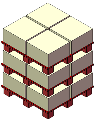 - The construction of the pallet is such that there are nine square blocks, sheet metal formed components which are welded on to the under side of a corrugated sheet plank, allowing the pallet use from all four sides.